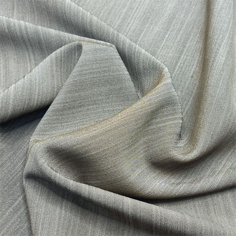 Questo tessuto è tessuto da filati di poliestere ad alta elasticità, e dopo la tintura e altri trattamenti, ha una sensazione di mano liscia e un buon drappaggio.